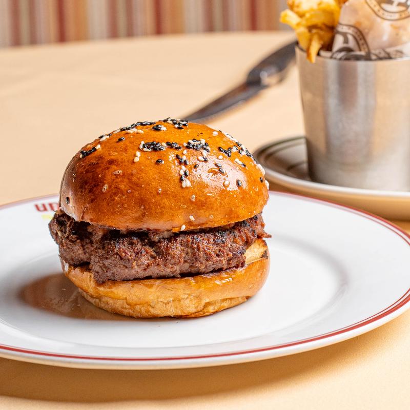 Prime wagyu beef blend, bacon jam, bone marrow butter, fries.