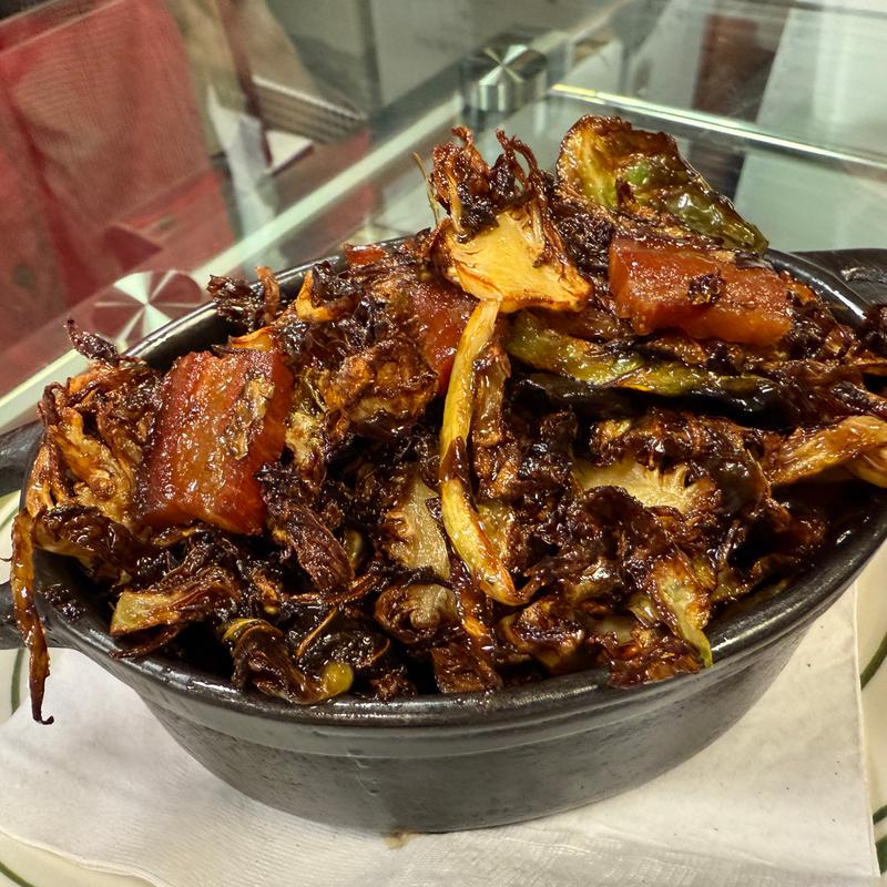 Grilled, toasted farm greens, champagne-dijon sauce, dried citrus gremolata.